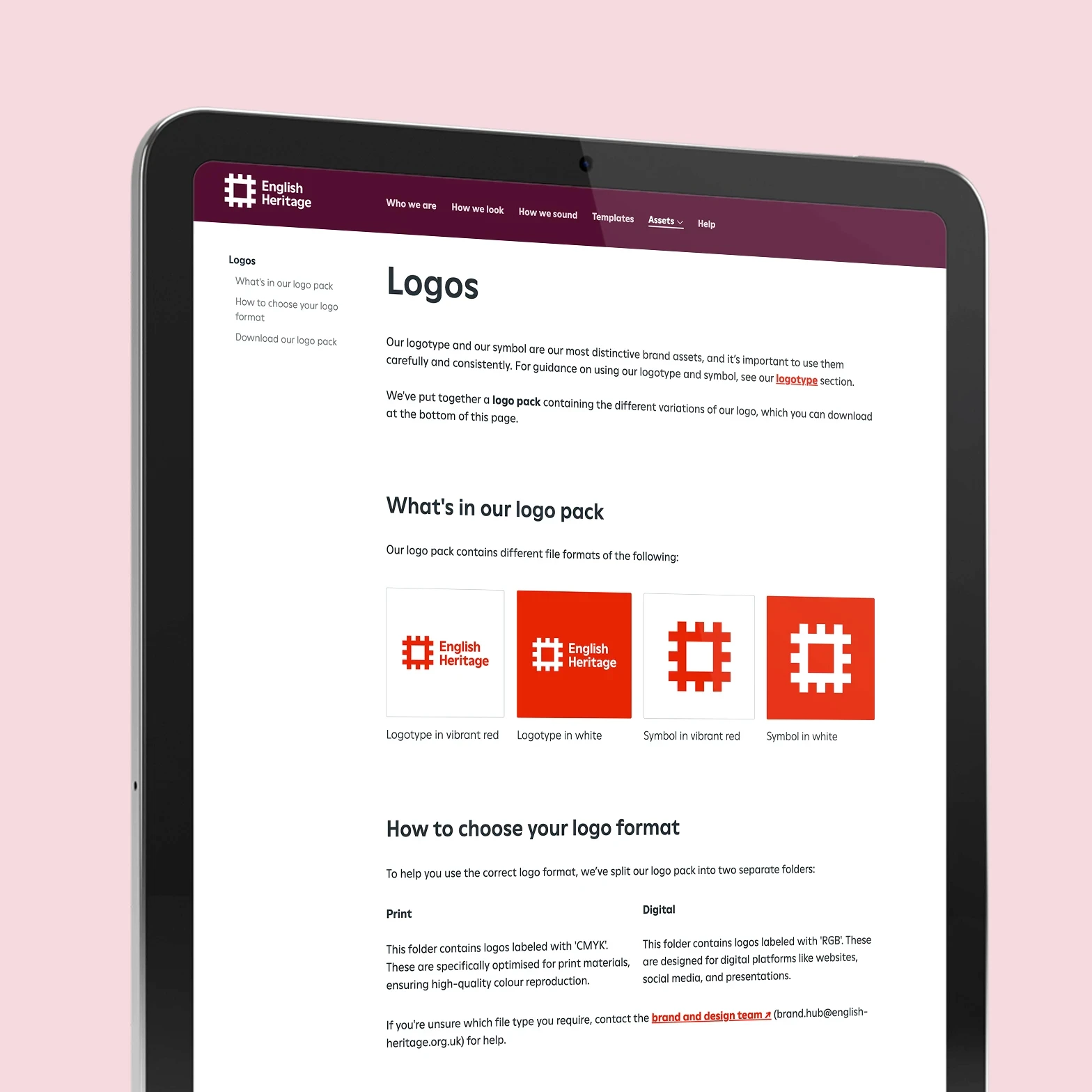 I led the design of a digital Brand Hub to act as a single source of truth for English Heritage's brand guidelines, templates and assets, supporting brand engagement and consistency across touchpoints.