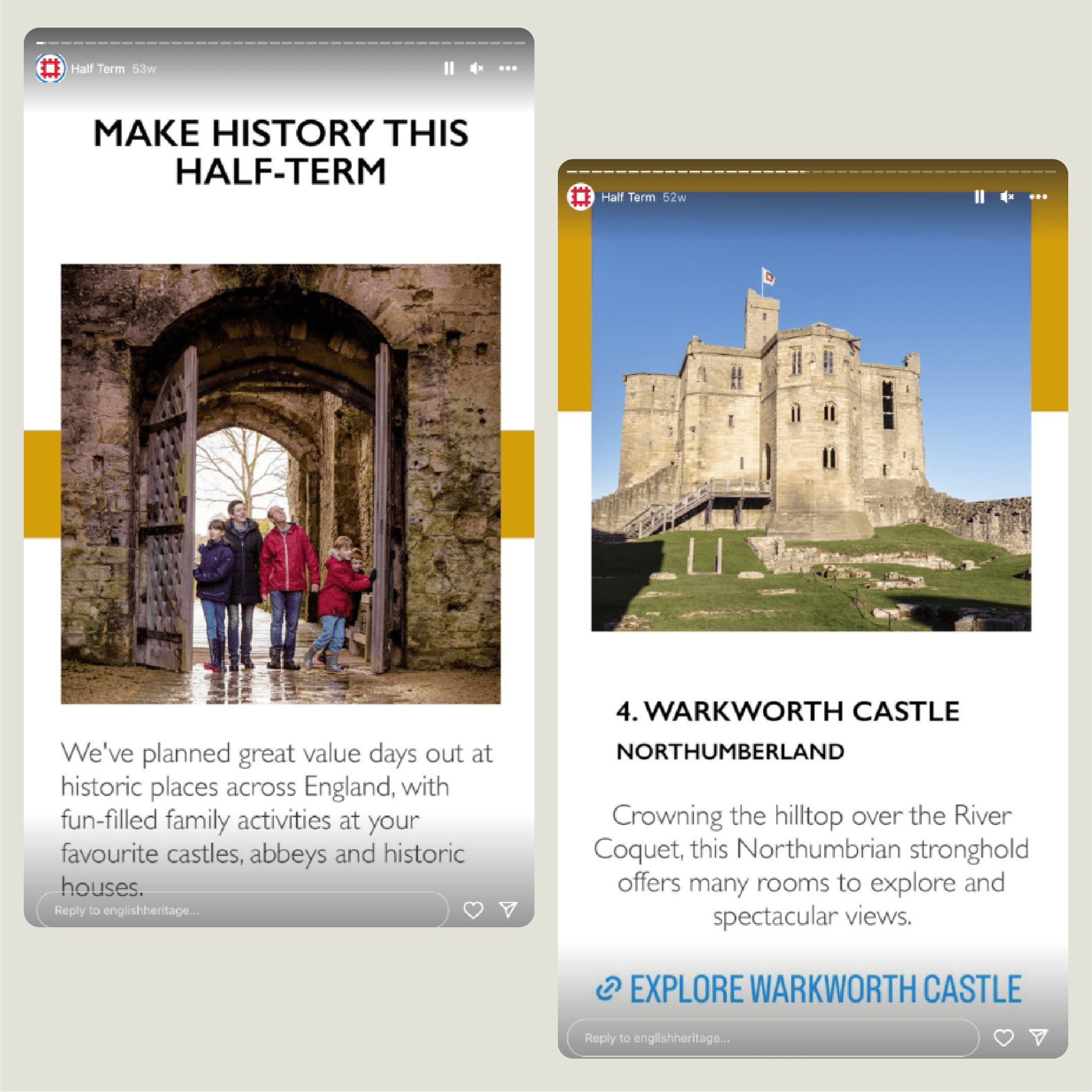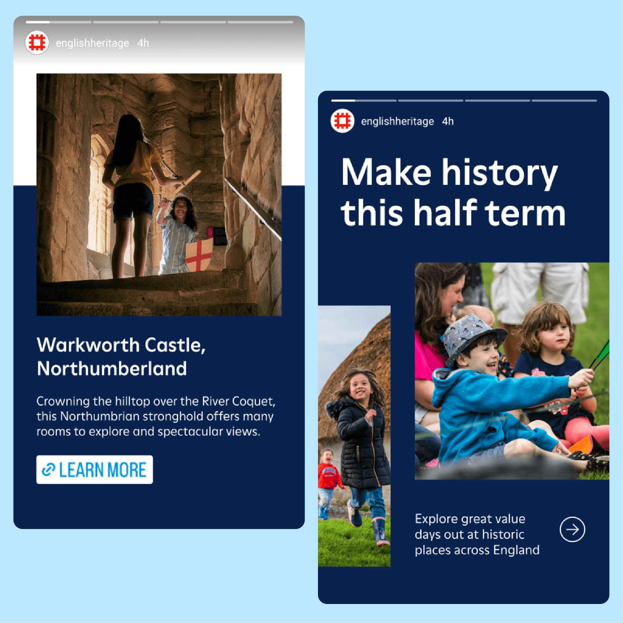 I created a cohesive suite of modular social media templates adaptable across formats (square, portrait, landscape). I balanced English Heritage’s own imagery with modern typography and dynamic layouts, resulting in a fresh, bold and engaging approach that felt like a natural progression from the previous styles.