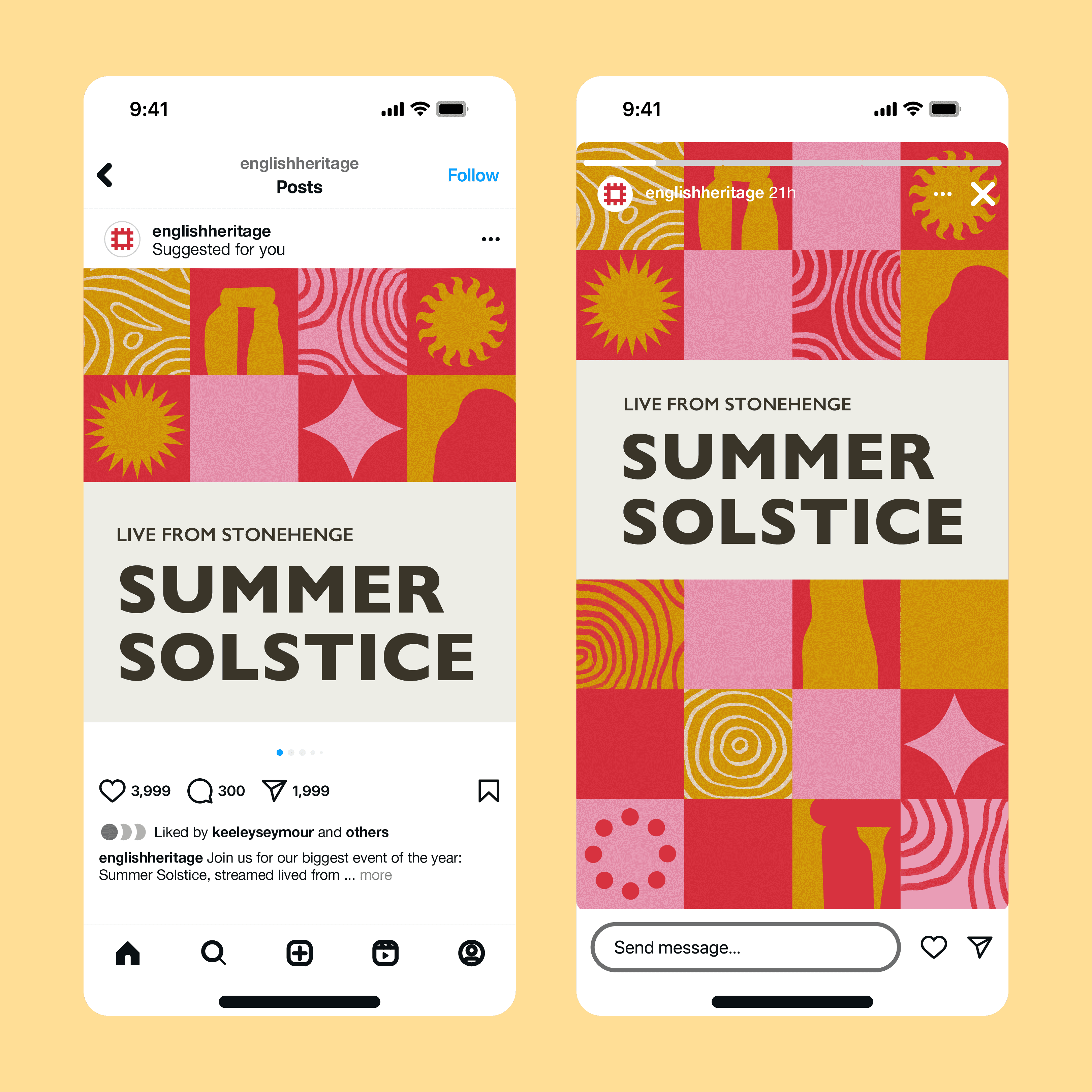 English Heritage required a bold visual identity to promote their Summer Solstice livestream at Stonehenge. This involved creating a set of eye-catching digital and motion assets, promoting it as a must-see event.