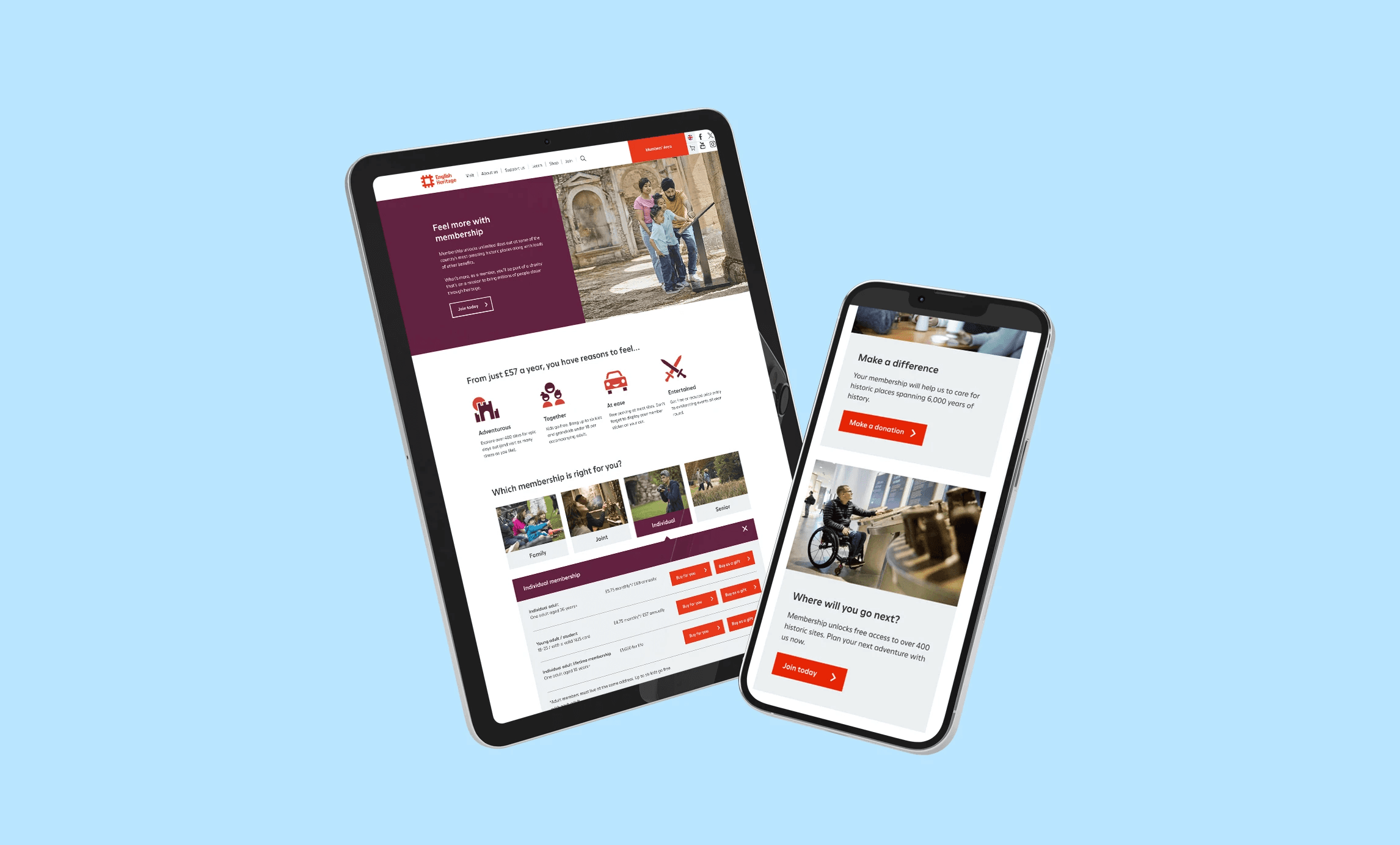 I led the redesign of key English Heritage website pages following their recent brand refresh, translating the updated identity into a bold, accessible and responsive digital experience. Working closely with content and development teams, I delivered high-impact improvements within tight budget, resource and technical constraints.